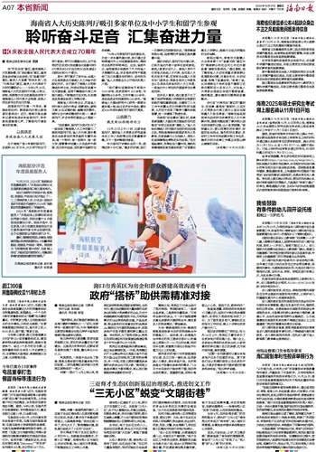 在“历史足迹”展区,感受海南人大发展脉搏,在“良法善治”展区,感受我省各领域立法成效;在“监督问效”展区,感受人大监督“刚性本色”;在“代表风采”展区,感受人大代表实干为民的履职初心……今年9月29日,海南省人大历史陈列厅开展,以图文、实物、视频等方式生动展现党领导下海南建立人民代表大会制度、实现人民当家作主的非凡历程。