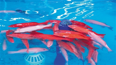 图为晨海水产公司万宁山根基地养殖的红瓜子斑鱼苗。