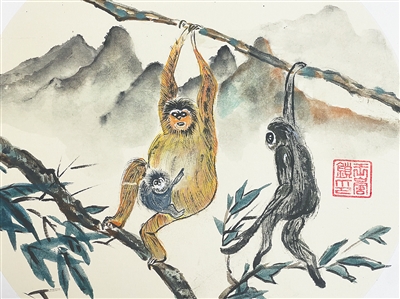 《海南长臂猿》 王岚锁绘