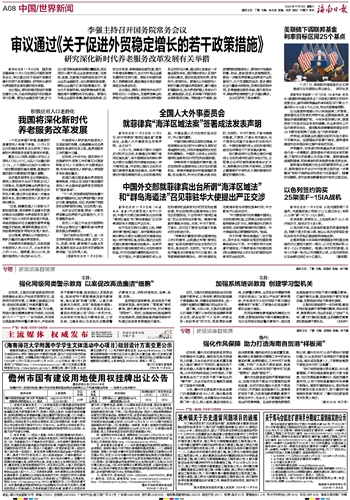 会议指出,要切实做好促进外贸稳定增长工作,为经济持续回升向好提供有力支撑。要加大金融支持力度,扩大出口信用保险承保规模和覆盖面,用足用好小微外贸企业政策性贷款,在授信、放款、还款等方面持续改进对外贸企业的金融服务,优化跨境贸易结算,帮助企业提升汇率风险管理水平。要壮大外贸新动能,促进跨境电商发展,推进海外智慧物流平台建设。要强化外贸企业服务保障,推动绿色贸易、边民互市贸易、保税维修创新发展,提升外贸海运保障能力,加大对外贸企业减负稳岗的支持力度。要吸引和便利商务人员跨境往来,稳妥推进与更多国家商签互免签证协定。