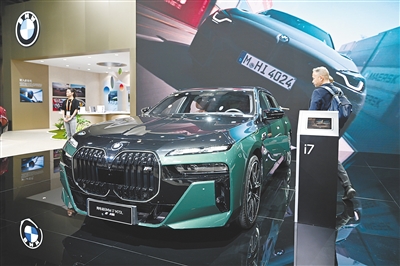 在第七届进博会汽车展区拍摄的宝马i7新能源车型。
