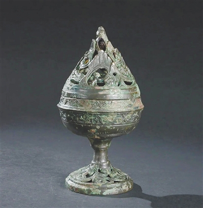从目前的考古实物看,专门为焚香而设计的香具,迟至汉代才出现。其中,最为著名的莫过于博山炉。据北宋徐兢在《宣和奉使高丽图经》中所载:“博山炉,本汉器也。海中有山,名博山,形如莲花,故香炉取象。下有一盘,作山海波涛、鱼龙出没之状,以备贮汤薰衣之用。盖欲其湿气相著,烟不散耳。”