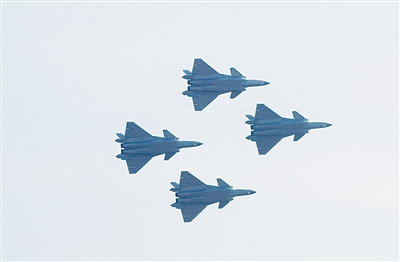 11月12日,海军歼-15系列舰载战斗机编队在第十五届中国航展上进行飞行表演。
