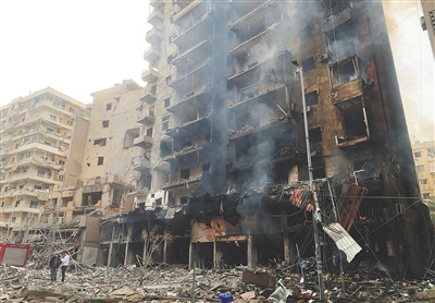 在黎巴嫩首都贝鲁特南郊拍摄的以军空袭后的废墟。新华社发