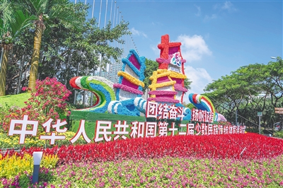 11月14日,三亚市凤凰路的一处运动会主题景观花坛。本组图片均由海南日报全媒体记者 李天平 摄