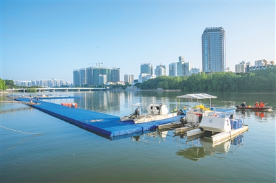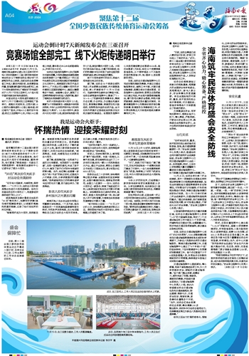 近日,在三亚河上,工作人员正在运动会登舟码头上忙碌。