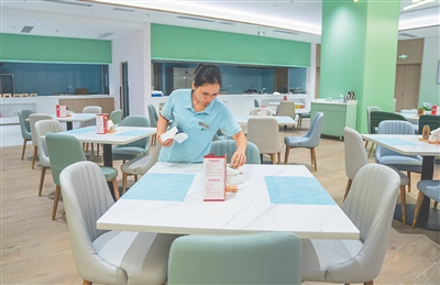 11月15日,在三亚夏日酒店,工作人员整理餐桌。