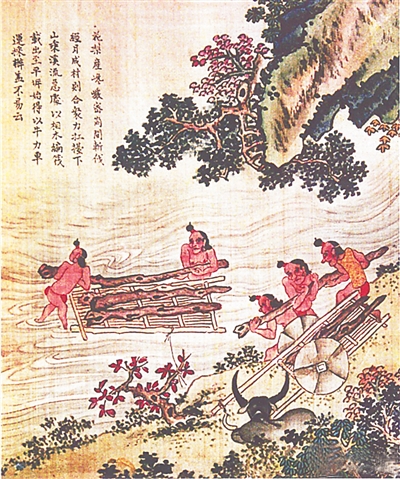 现存于中国国家博物馆的《琼州海黎图》中的“运木图”。