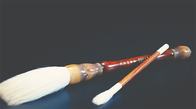 “凤姐儿等来至探春房中,只见他娘儿们正说笑。探春素喜阔朗,这三间屋子并不曾隔断。当地放着一张花梨大理石大案,案上磊着各种名人法帖,并数十方宝砚,各色笔筒,笔海内插的笔如树林一般。”