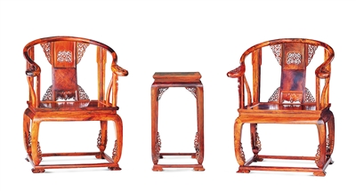 海南黄花梨(降香黄檀)皇宫椅三件套。