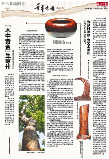 不过,由于价格一路飞涨导致采伐过度,加之成材缓慢等因素,海南黄花梨野生资源已经枯竭,市面上木材稀少。对此,国家一级工艺雕刻师、海南省黄花梨学会执行会长邹鸿认为,要保护与发展并行。
