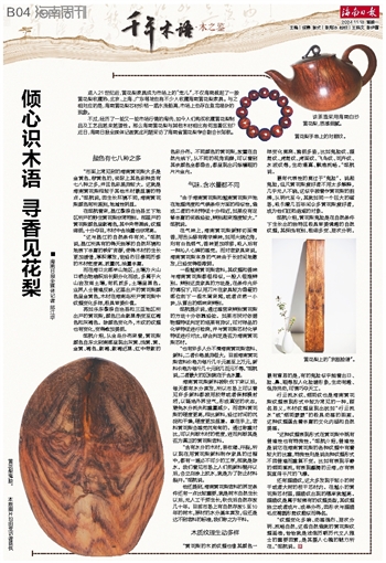 不过,经历了一轮又一轮市场行情的淘洗,如今人们购买收藏黄花梨制品及工艺品越来越理性。那么海南黄花梨与其他木材相比有何显著区别?近日,海南日报全媒体记者就此问题采访了海南省黄花梨学会副会长邹航。