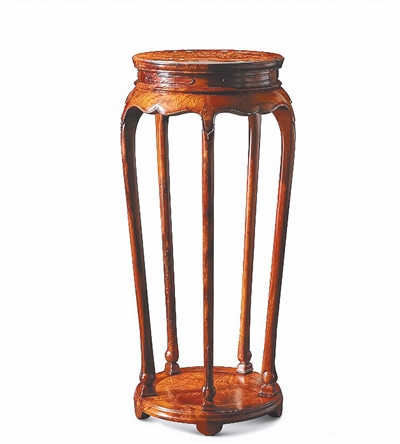 海南黄花梨明式家具五足带地盘圆花几。 资料图