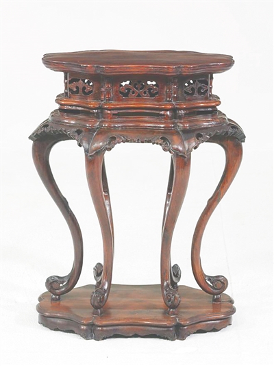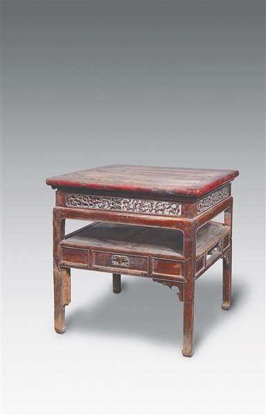 恭王府博物馆藏清代黄花梨螭纹双层带套面烤肉桌。