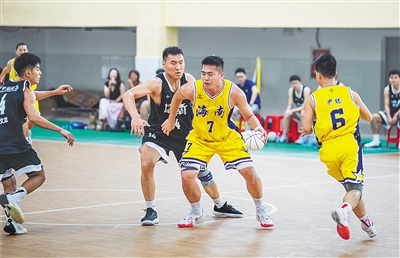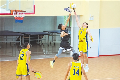 11月19日,在海南中学三亚学校,运动会珍珠球项目海南代表队同河南代表队一同训练。
