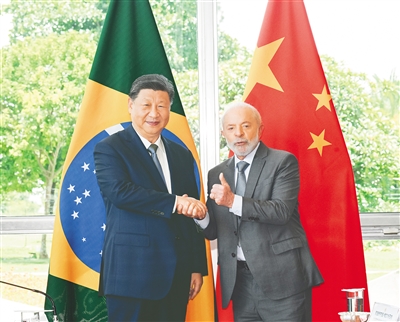 习近平指出,很高兴在中巴建交50周年这个具有重要历史意义的年份访问巴西。刚才卢拉总统为我举行最高礼遇的隆重欢迎仪式,充分体现了对中巴关系的高度重视以及对中国人民的深情厚谊,令我深受感动。中国和巴西是东西半球两大发展中国家。回首过去50年,中巴关系跨越山海,探索出发展中大国相互尊重、互利友好、合作共赢的正确相处之道。巴西是首个同中国建立战略伙伴关系的国家、首个同中国建立全面战略伙伴关系的拉美国家。近年来,在我和卢拉总统战略引领下,两国日益成为命运与共的可靠朋友、共促和平的积极力量,中巴关系正处于历史最好时期,不仅增进了两国人民福祉,也维护了广大发展中国家共同利益,壮大了全球南方的力量和声音,为世界和平稳定作出突出贡献。