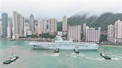 图为海军海南舰在香港招商局码头顺利靠泊。新华社发