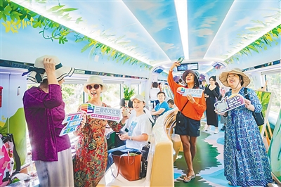 游客在三乐旅游铁路动车上参与车厢文化系列活动。 海南日报全媒体记者 刘杰 摄