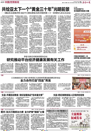 亚太地区人口占世界三分之一,经济在全球占比超过六成,贸易占比近半。当今世界面临经济增长乏力等不利因素,可持续发展动能不足。在此背景下,亚太经济前景和发展成色备受关注。