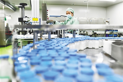 在山东菏泽了未元生物医药大健康产业园,工作人员在抗生素生产线值守。 新华社发