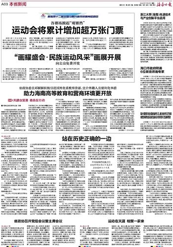 三亚河上,龙舟竞速。首次带队参赛的香港代表团领队陈宗伦非常兴奋,他表示:“香港市民喜爱龙舟运动,我们的队员要么是学生,要么已经工作了,都是利用空闲时间训练,大家都满怀热爱而来,希望深入交流和学习。”