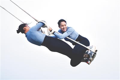 和17岁的队友刘家爱、田晓婵比起来,海南队运动员罗赵妹与搭档文梅霞不算年轻,但日常训练时,大家都一样拼。“站在秋千上,那种飞翔的感觉让她们忘记自己的年龄,忘记训练的辛苦,一心只想‘飞’得更高。”罗赵妹说。