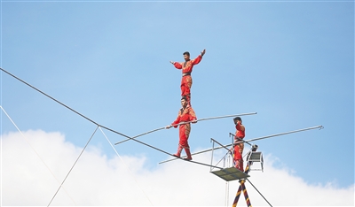 ■ 海报集团全媒体记者 余佳琪 周月光端起平衡杆,踏上高空绳索,走向另一端,一连串翻、转、跳、蹲的高难度动作,精彩绝伦的表演让观众惊叹不已,现场叫好声此起彼伏。