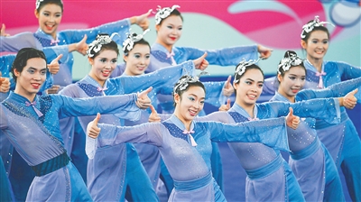 以五禽戏、八段锦为根源的传统健身运动,融合多民族舞蹈被创编成民族健身操,56个八拍,寓意56个民族是一个共同体,健体娱乐的同时,已经成为各民族文化交往交流、互鉴融通的鲜活实例;