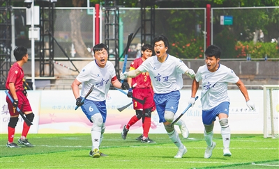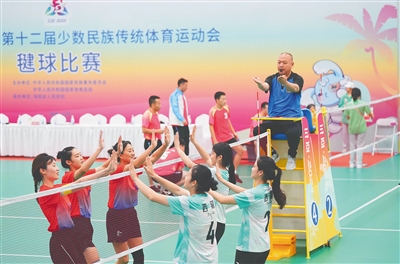 毽球项目比赛后,海南队和西藏队的队员击掌致意。