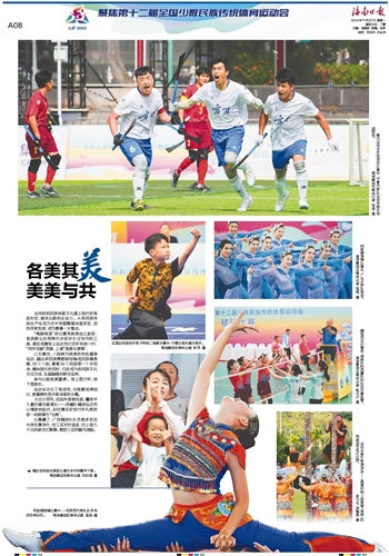 运动会室外表演项目——高高的树上结槟榔(海南)的两组选手进行比拼。实习生 倪翰宣 摄