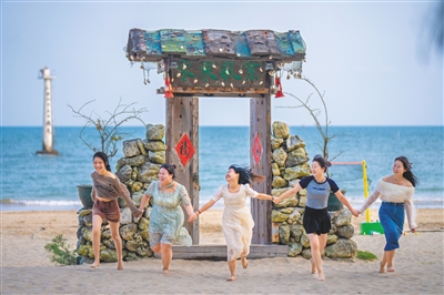 游客在琼海排港村奔跑。