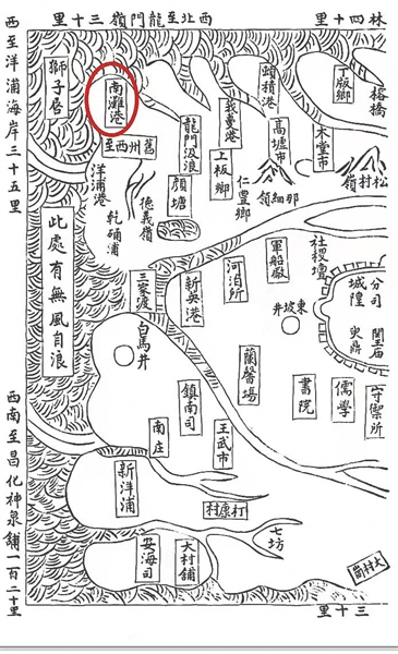 清康熙《儋州志》的“舆图”将“湳滩港”写成“南滩港”。 杨树供图