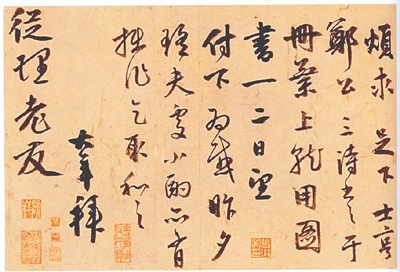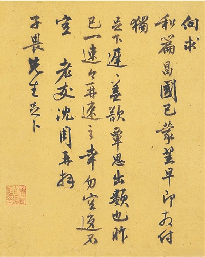 明代书画家、文学家沈周在《致唐寅书札》中这样说:“向求和篇,昌国已蒙翌早即相付,独足下迟迟,盖欲覃思出类也。昨已一速,今再速之,幸勿空返。不空。老友沈周再拜。子畏先生足下。”这是沈周写给大才子唐寅(字子畏)的一封索诗信札。