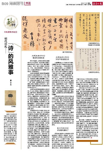 ■ 李玉萍相较于正史和诗文集,古人信札里的文字往往通俗晓畅、直抒胸臆,读其信如见其人。此类信札鲜活地呈现了人们的日常交往,也记录了不少充满趣味的小事。古代读书人大多喜好吟诗作画,以钻研艺事、唱和诗词为雅事。在大量的明代信札里,文人墨客们不仅谈论衣食住行,表达问候关爱,还经常涉及书画题跋、求诗、评诗、唱和等内容。