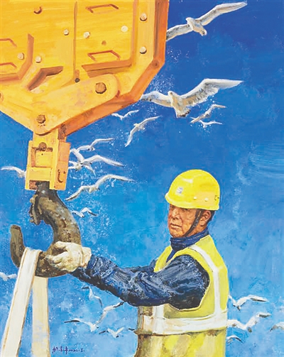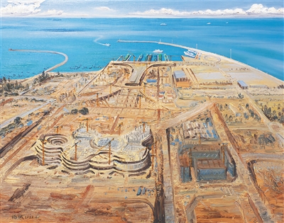 杨诚 油画 《海口新海港滚装码头客运综合枢纽站建设》