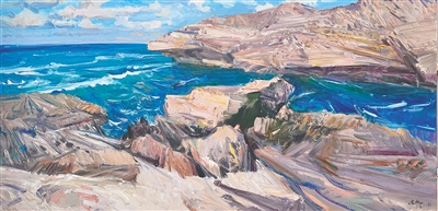 “虽然是写生,但因为我们看到美景,心中自然涌动着丰富的情感,所以呈现在画板上的是客观景色和主观感受的结合。”陈奕文说,在描绘木兰湾的作品时,自己除了画出了风景外,还想要通过画面展现出海阔天空的开阔豁达感。