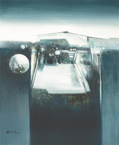 专攻油画数十年的本土画家陈奕文此次共有3幅作品参展,内容分别是文昌木兰湾、琼海万泉河以及文昌海边。