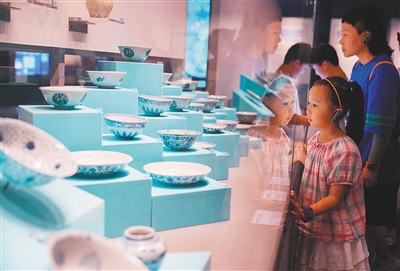 在中国(海南)南海博物馆,“深蓝宝藏——南海西北陆坡一二号沉船考古成果特展”吸引观者驻足观赏。海南日报全媒体记者 张茂 摄