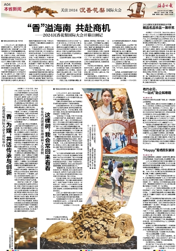 走进大会举办的国际沉香花梨展览会场,香气扑鼻。来自阿联酋迪拜的拉基·哈桑和印度、阿曼的合作伙伴穿梭各个展台,计划在海南采购产品销售至中东、日本等地。他告诉海南日报全媒体记者,十年内“沉香产业看中国”,海南沉香在全球范围内也可谓品质突出,“大会结束后我还会过来考察”。