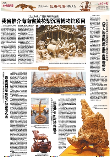 本报海口11月29日讯 (海南日报全媒体记者李梦瑶)11月29日,2024沉香花梨国际大会分论坛——新兴收藏多元融合与创新发展研讨会在海口举办。借众多专家、藏家云集之契机,我省亮出一张崭新的“文化名片”:海南省黄花梨沉香博物馆项目。海南省黄花梨沉香博物馆是“十四五”期间海南省重点文化建设项目,旨在为黄花梨、沉香等珍贵文化遗产提供一个集中展示、保护和研究的平台,同时全面带动黄花梨和沉香种植、加工、收藏、研学、教育、旅游、医药、展示、交易、科技等产业链的协同发展。