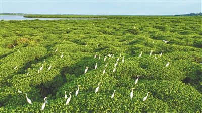 今年截至10月末,兴业银行海口分行支持的绿色项目已覆盖海南15个市县,涉及风光电等清洁能源、固废处理、水务水利、绿色建筑等多个领域。图为海南东寨港国家级自然保护区。