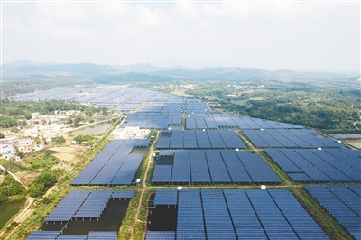 兴业银行海口分行积极贯彻落实国家“双碳”目标,通过创新驱动,在海南先后落地多个“首单”。图为海南乡镇的太阳能渔光互补示范项目。