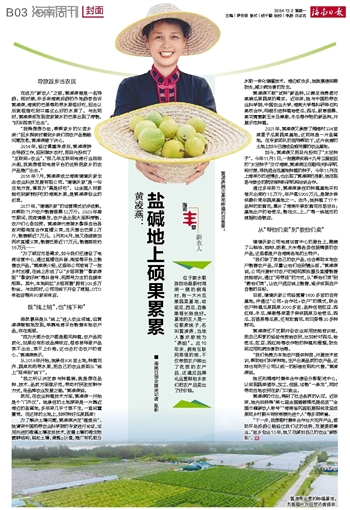 ■ 海南日报全媒体记者 陈彬位于陵水黎族自治县新村潟湖一侧的桐海村,有一大片瓜果蔬菜基地,哈密瓜、西瓜、百香果等长势良好。基地的主人是一位黎家妹子,名叫黄凌燕,当地人喜欢称她为“燕姐”。近10年来,拥有互联网思维的她,不仅带领农户种出了优质的农产品,还通过品牌化运营帮助乡亲们把农产品卖出了好价钱。