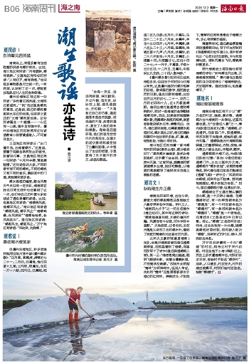 海南岛四面环海,古往今来,蔚蓝大海的潮起潮落总是能给文人墨客带来创作灵感。明代文人、“海南四大才子”之一的王佐曾作《海边纪行》,其中有这样的诗句:“潮痕每准星长短,水候仍催月次躔。风景苍苍今似昔,可怜华发半盈颠。” 天地悠悠,过客匆匆,王佐大概是从来而又去的潮水中,看到了消逝的青春和无法留住的光阴。