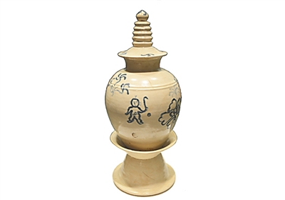 唐青花塔形罐上有孩童玩步打球的图案。本版图片均为资料图