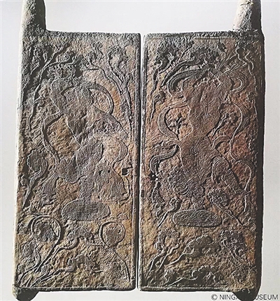 出土于宁夏盐池县的唐代石刻胡旋舞墓门。