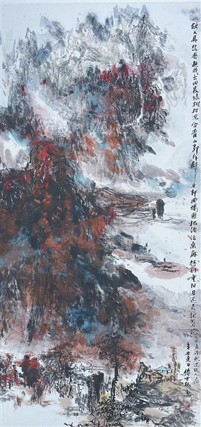 傅世林是中国画坛的深耕者,无论是栩栩如生的花鸟画、传神写照的人物画,还是气势磅礴的山水画,都彰显了他别具一格的艺术基调。其以深厚的艺术修为和独慧的审美哲思,将中国画的笔墨韵味与西方绘画的色彩表现巧妙融合,既体现了中国画“师外造化,中得心源”的传统美学思想,又开创了一种既继承传统又富有现代气息的艺术新境界。比如他的重彩写意山水画《情满秋山》《江汉曾为客》《千山鸟飞绝》等系列画作,我们从中可以领略其独特而崭新的艺术面貌:汲取古法而不囿于成规,又将西画色彩的魅力与水墨韵味进行巧妙联姻。其间,饱含他对自然和人生的深刻体悟。