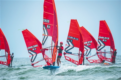 运动员驾驶帆板在琼海博鳌海域冲浪。 蒙钟德 摄 本版图片除署名外均由 方山 摄