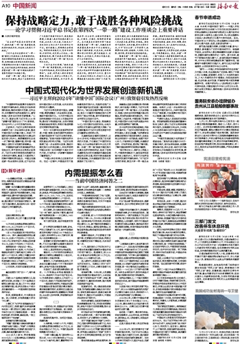 把握机遇,尤须勇往直前;战胜挑战,呼唤勇毅担当。现在,共建“一带一路”已经进入高质量发展新阶段,这是新征程上的中国为人类和平与发展事业作出新的更大贡献的新起点。保持战略定力、抓住战略机遇,一茬接着一茬干,以钉钉子精神抓下去,定能实现共建“一带一路”更高质量、更高水平的新发展,推动建设一个开放包容、互联互通、共同发展的世界。