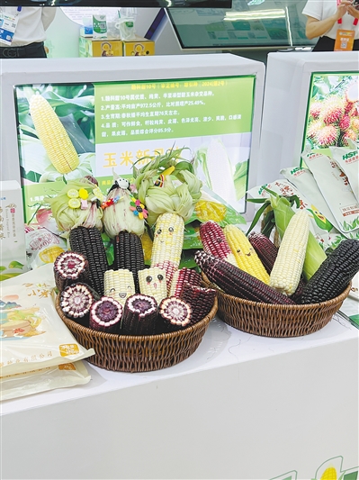海南农垦馆里展示的各类玉米新品种。海南日报全媒体记者 邓钰 摄